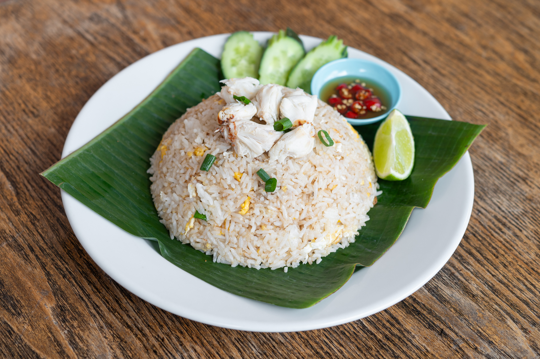 Egg and shallot fried rice, with sweet Crab meat nuggets.