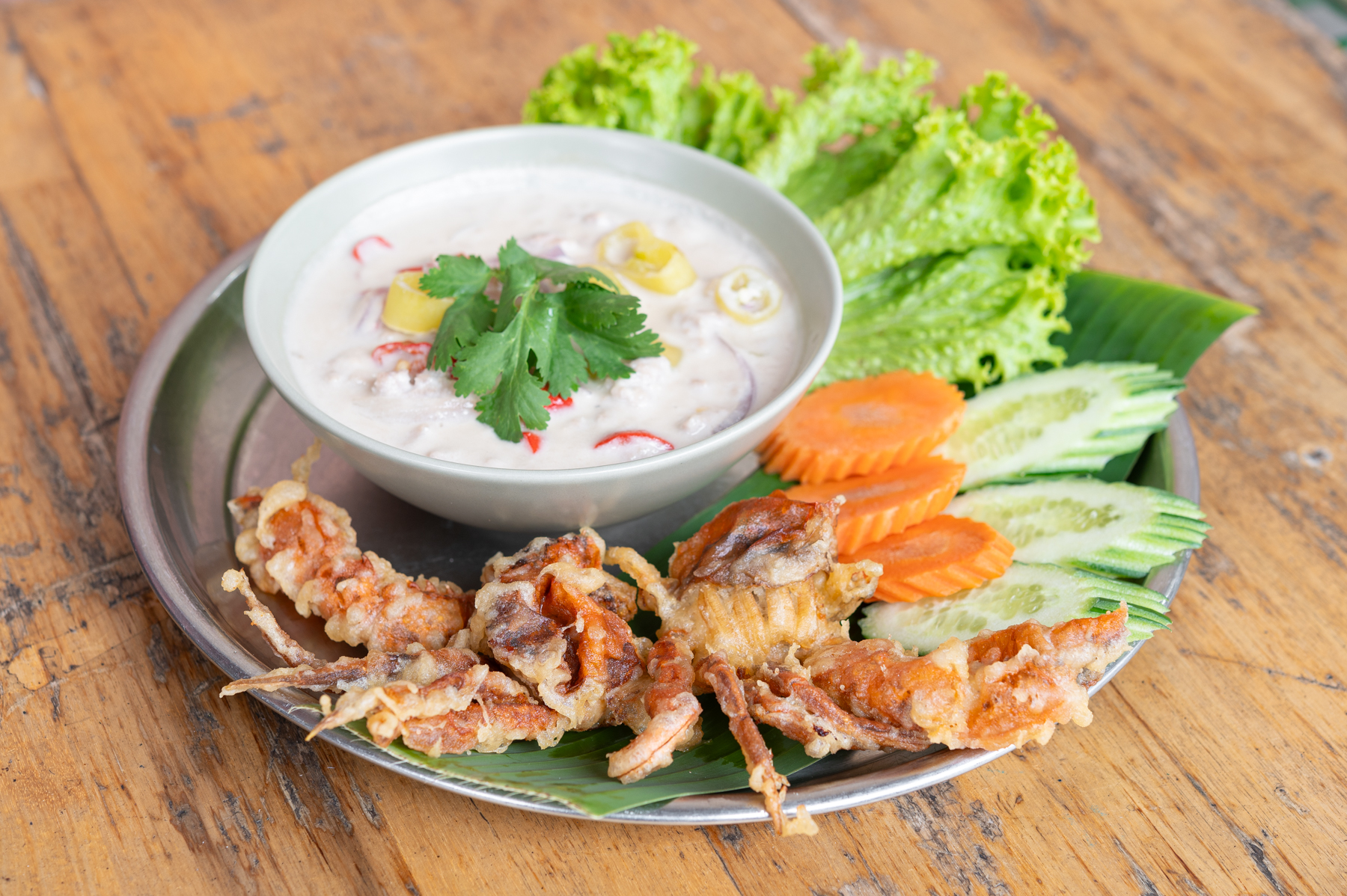 Chilli and Pork Coconut Stew with Deep Fried Soft Shell Crab
