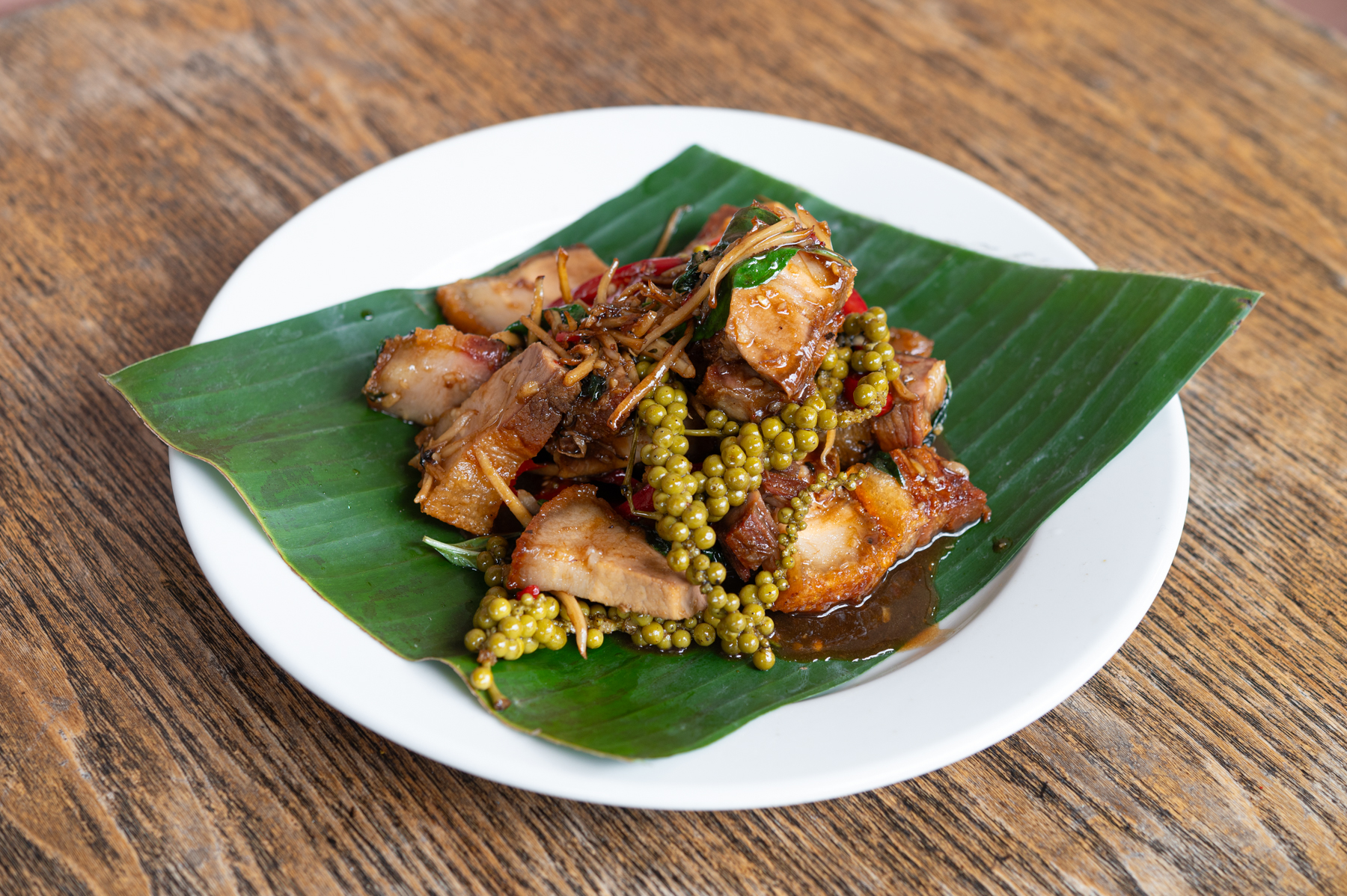 Crispy pork belly, with zesty fresh whole peppercorns, enough said!